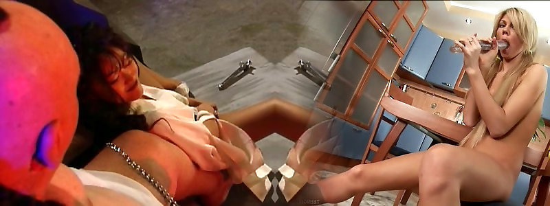 Cum eating her feet, Tortured Girl with Needles Injection Saline in Jug and Pussy
